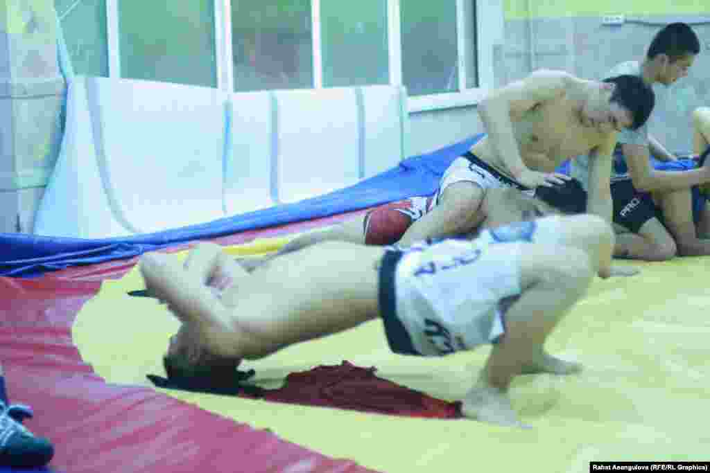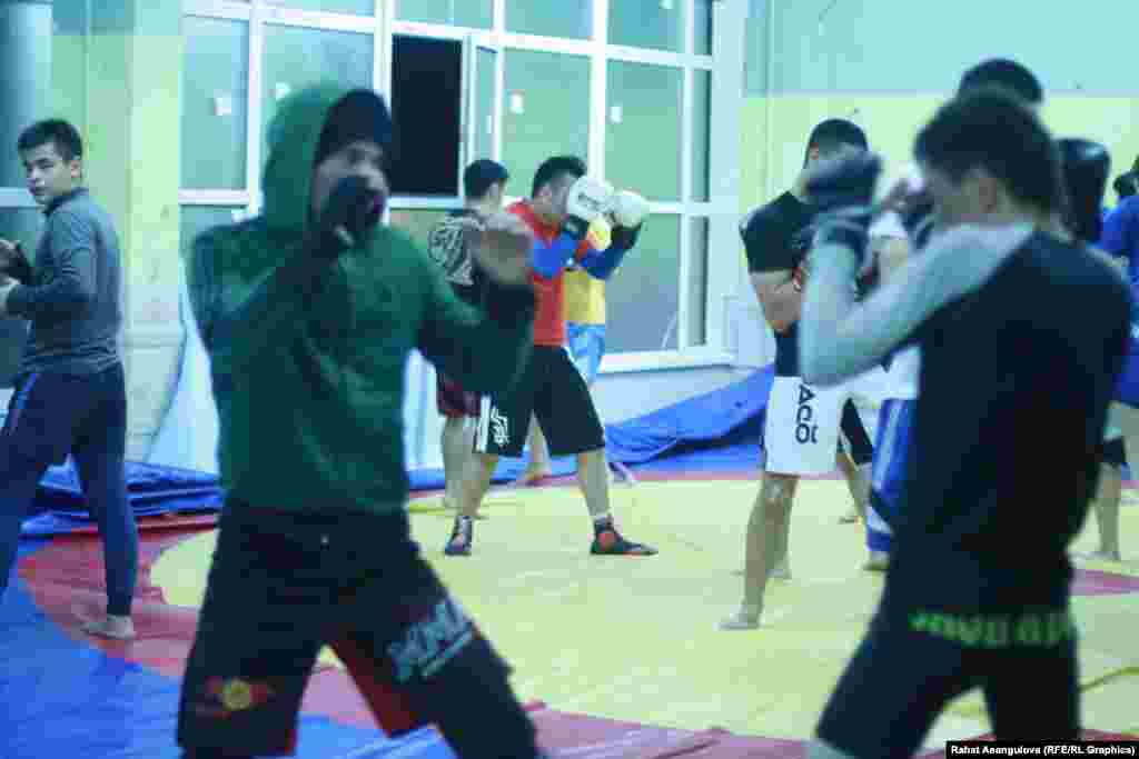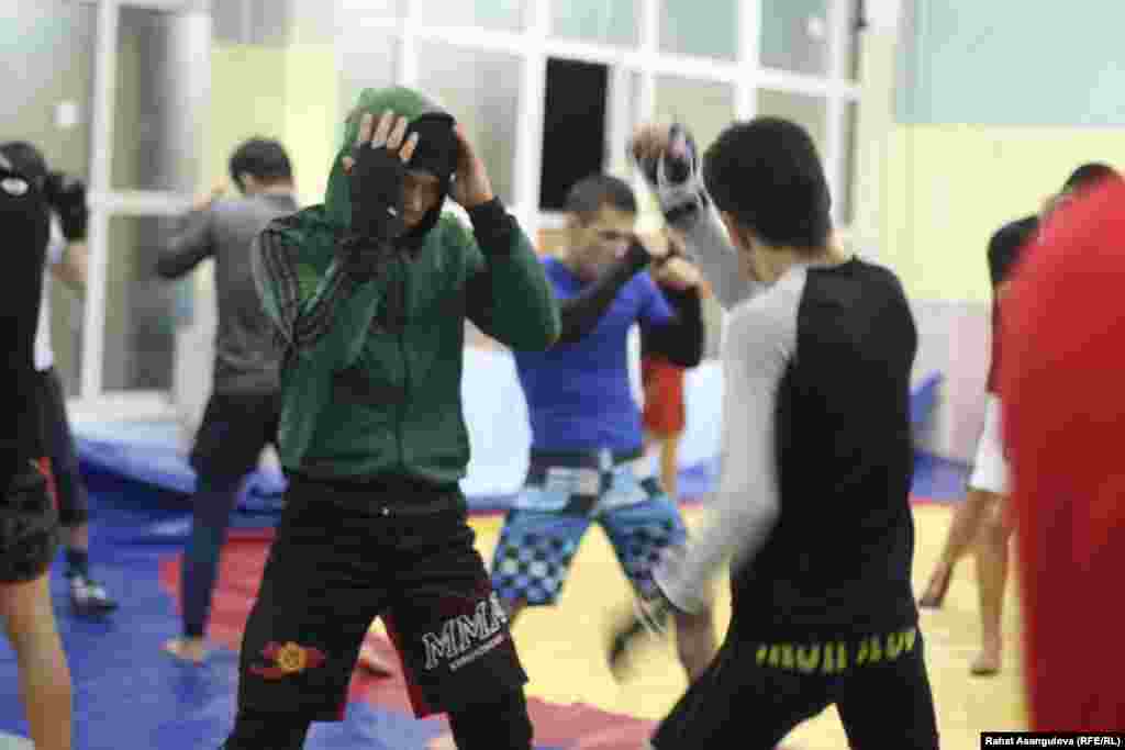 В спортивном клубе «Жаш куч» мы встретились с четырьмя известными в России кыргызскими бойцами, выступающими в соревнованиях по смешанным единоборствам, и их тренером. Фото Рахат Асангуловой.
